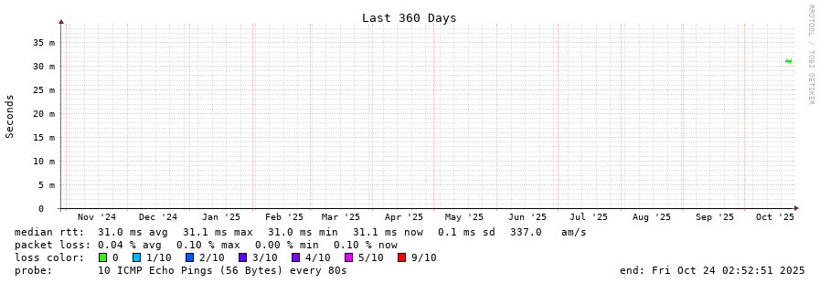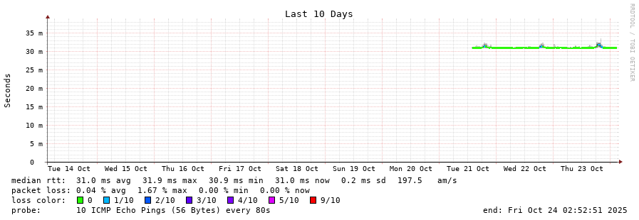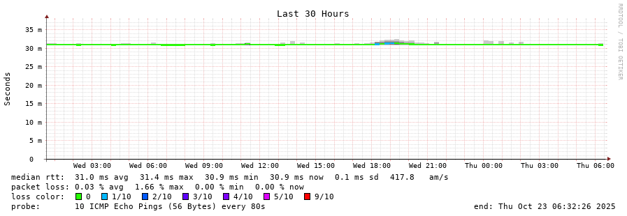 23 > 161.53.120.254 (161.53.120.254) [AS2108] 30.969ms 30.810ms 30.837ms