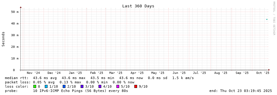 traceroute to 2a0b:2f00:0:234::151 (2a0b:2f00:0:234::151), 30 hops max, 80 byte packets - Generated at 2025-10-23 03:15:01