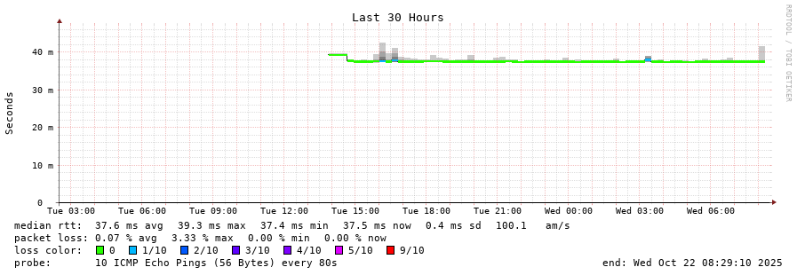 11 > de-cix.v4.telecomit.ro (80.81.195.242) [*] 37.072ms 37.047ms 36.877ms