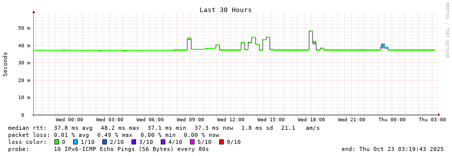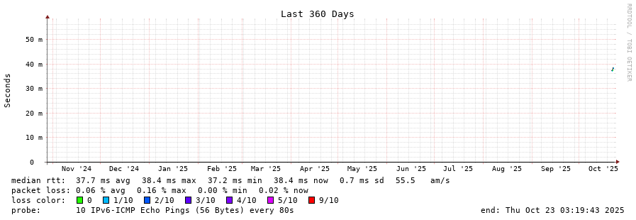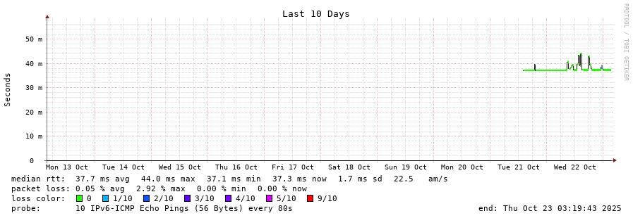 traceroute to 2a03:8f84::f1b6:9702:29c:9062 (2a03:8f84::f1b6:9702:29c:9062), 30 hops max, 80 byte packets - Generated at 2025-10-23 03:15:01