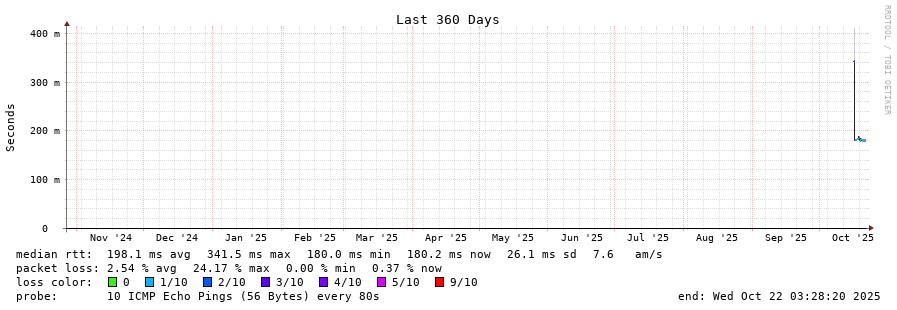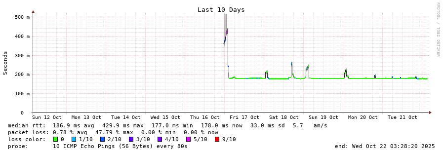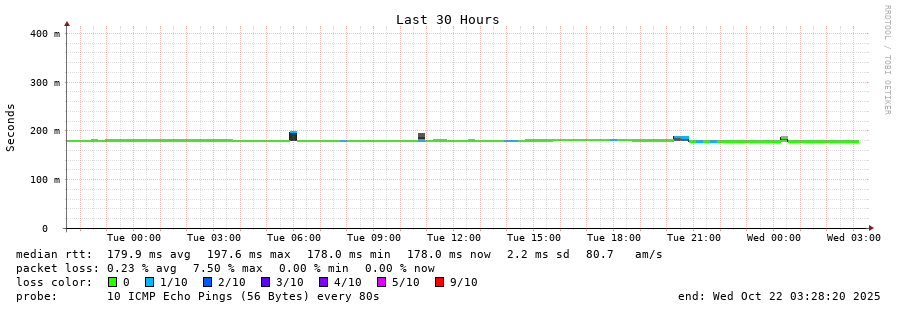 12 > 213.144.185.45 (213.144.185.45) [AS6762] 167.921ms 167.874ms 167.952ms