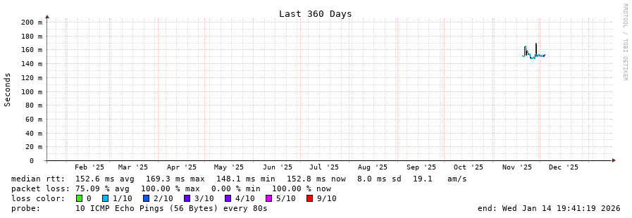 traceroute to 200.95.176.148 (200.95.176.148), 30 hops max, 60 byte packets - Generated at 2026-01-14 19:30:01